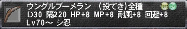 うまれてすいまえん;;;; というわけで行ってきましたグスタフ。 まあ、メンテあとだしアミキリとかブネとかいないかなーってふらっといったんですけども。 ちょうどLSで一人クダを巻きながらブラブラしてたんですけどね。 そこにうっかり先輩がきたもんでちょっと拉致していってみました。 事前にワイバーンが3匹いるのは確認済みだったんですが。。。w さてウングルさんの抽選となるワイバーンはG-6近辺に湧く2匹なんですけれども そこには骨もいるわけで、ついでに掃除しつつワイバーンを倒します。 オティ広場からこっちのほうへ抜ける細い通路でわき待ちすること1pop。 ウングルさんの湧くE-9広場を確認したところ、いらっしゃいました。。 ということで強化をして戦闘開始。 葱の装備は回避装備。といいつつもイベイジョンピアス忘れたので 不知火、オプチ、スコハネ、青龍籠手(途中夜間になったのでレリックに変えました)、 イベイジョントルクにボクサーマントくらいだったかな、あとはヘイスト重視で。 ファングラッシュで黄色になったりもしましたがファラ2ももらってたこともあり 無事に (σ´∀`)σとあいなりましたよっと。 ありがたやありがたや;; また一歩ソロ用の強化が進みました。 PR